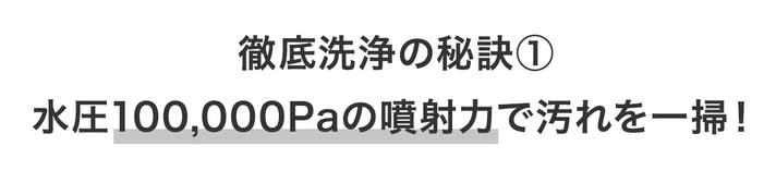 水圧100,000Pa、自社従来機の3倍以上*の噴射力に最大75℃の高温水柱、さらにLISSOME独自のスウィーピング・ジェット技術で本気の徹底洗浄!