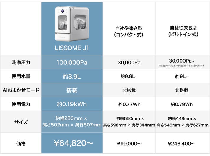 LISSOME J1は、自社従来機の3倍以上の噴射力で汚れを一気に洗い流してくれます!