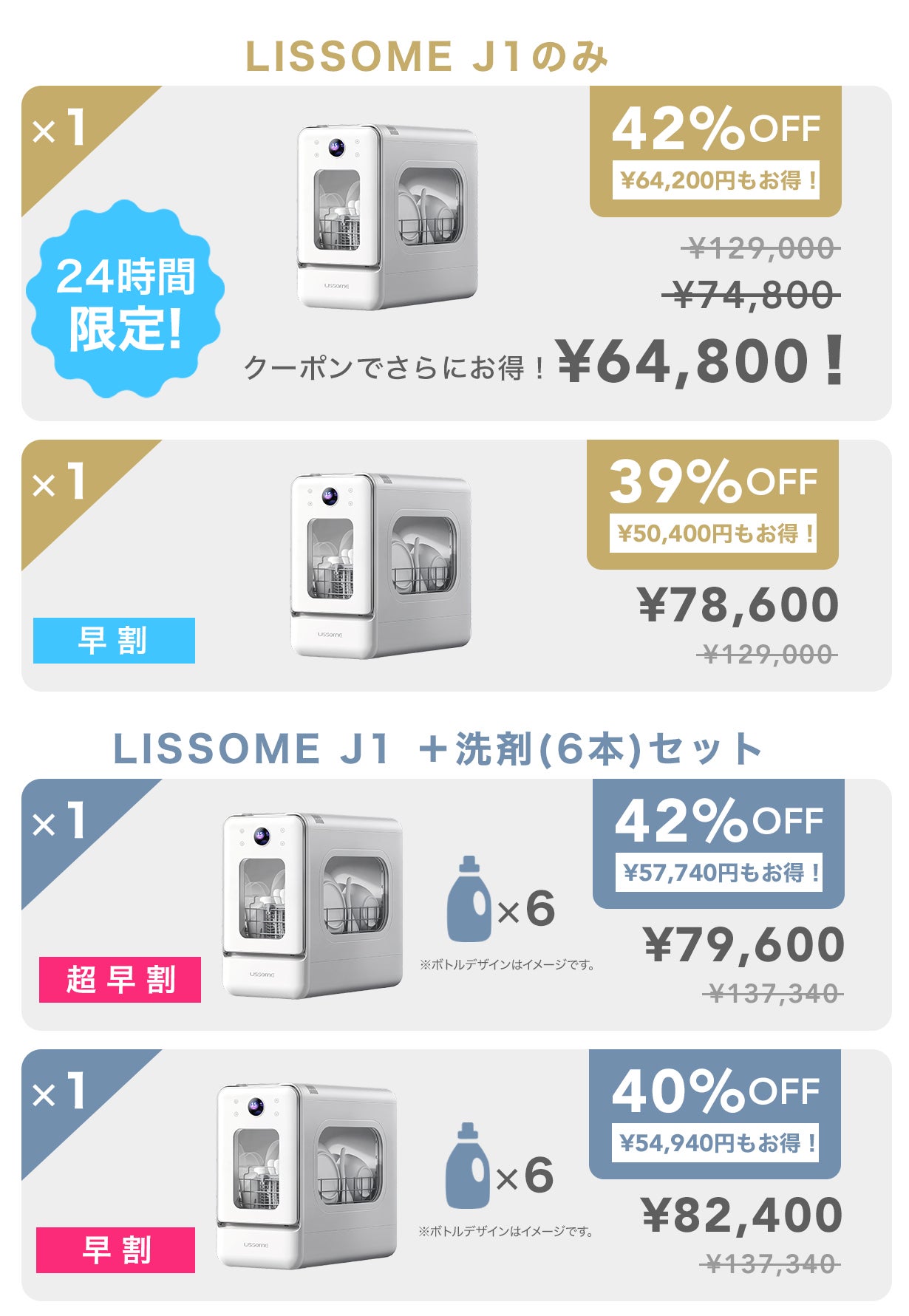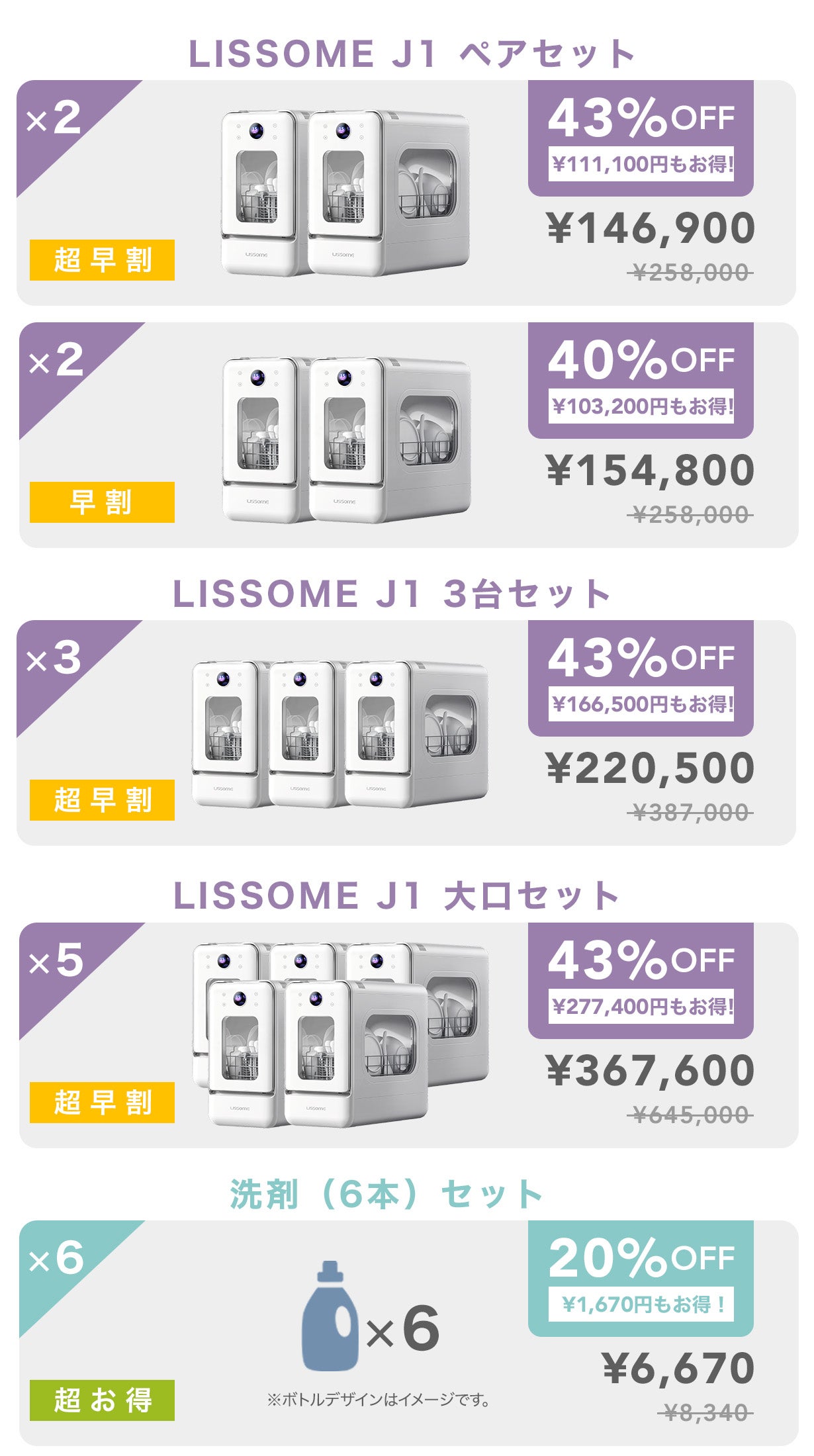 【早割40%OFF】LISSOME J1 + 洗剤(6本)セット