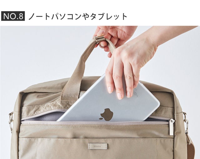 バッグの背面にはファスナー付きのノートパソコン収納部が設けられており、パソコン・タブレットPCなどの収納が可能です。
