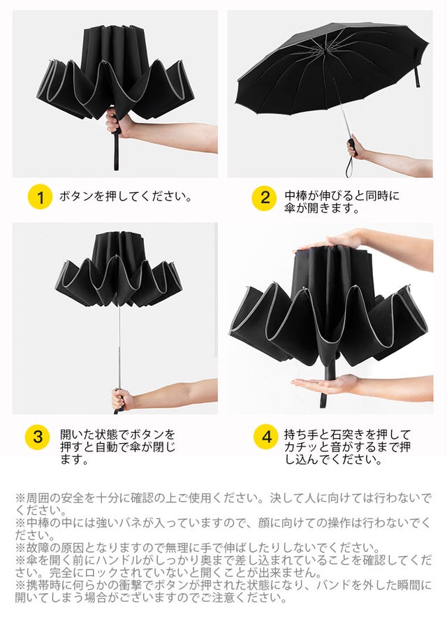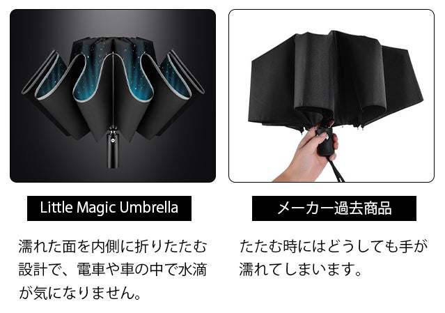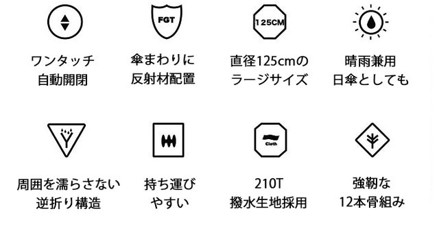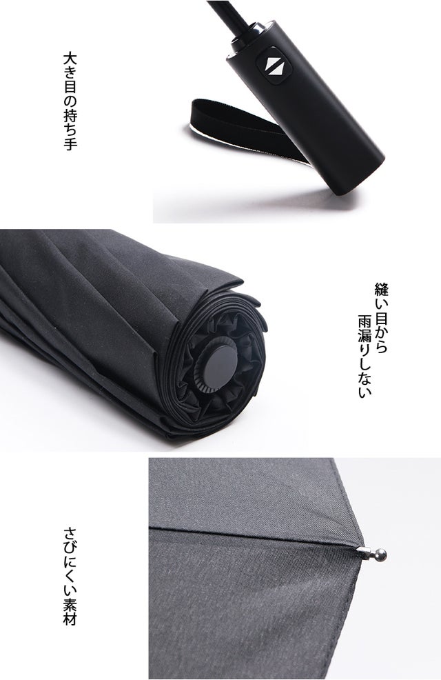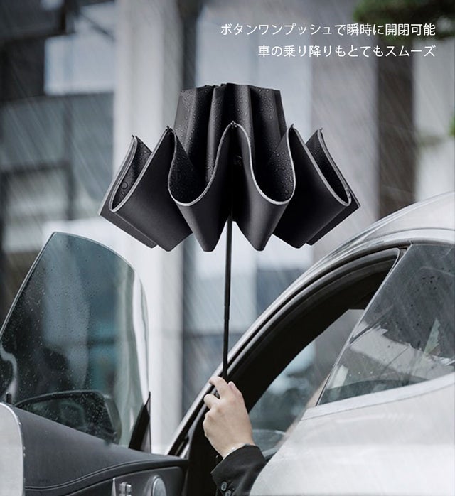 さらに、ワンプッシュ自動開閉、逆折り構造、UV防止加工や反射素材など細部へのこだわりを追加し、シンプルなデザインながら高機能に仕上げた1本です。