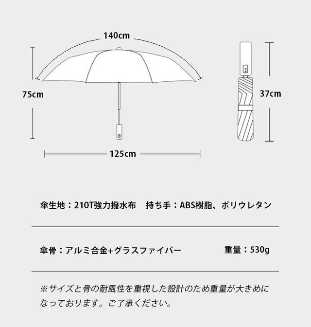 - コンパクトに折りたたみ可能ながら125cmのラージサイズ、さらに片手ワンプッシュで自動開閉。