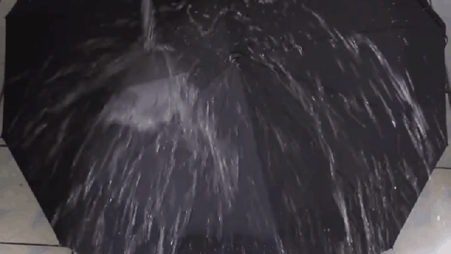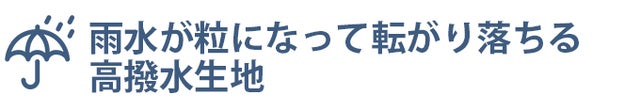 強く水をはじくので雨水が粒になって転がり落ち、ベターっと濡れたままになってしまうことがありません。傘を閉じてからもサッと水が振り切れます。