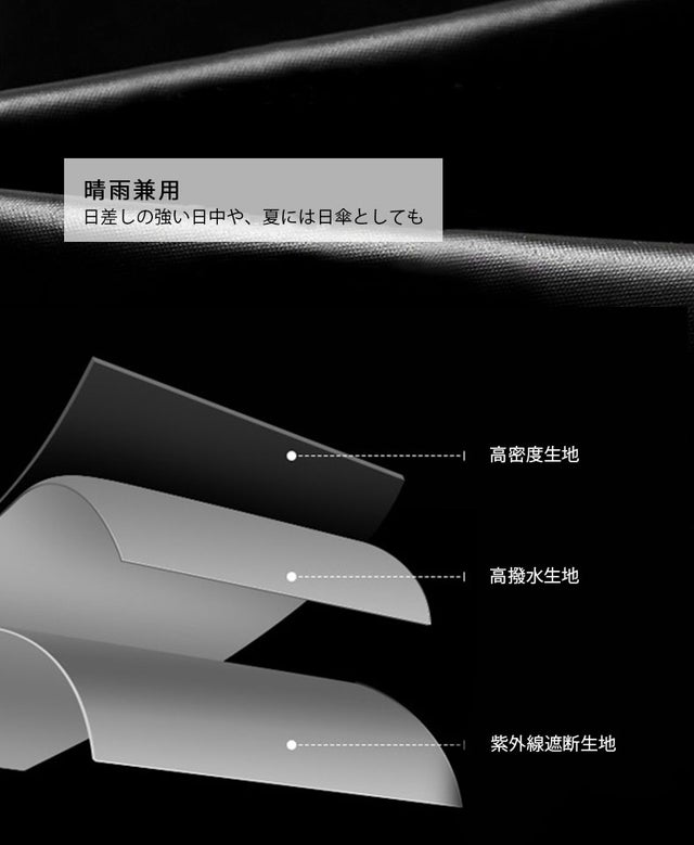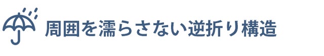 - 周囲を濡らさない逆折り構造&雨水が粒になって転がり落ちる高撥水生地採用。