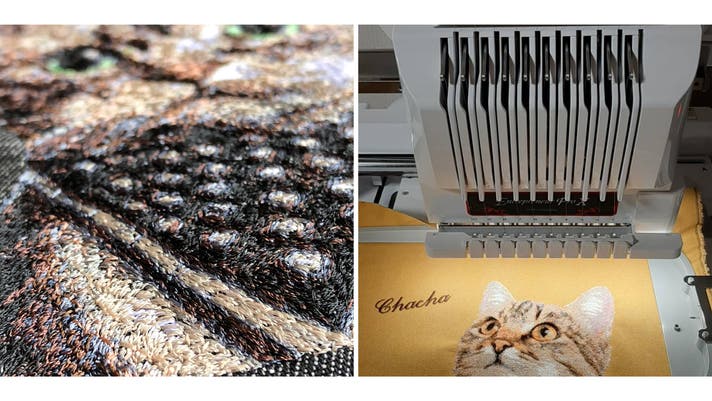 写真から刺繍データを作り、毛並み・表情・色を細かく再現しながら、