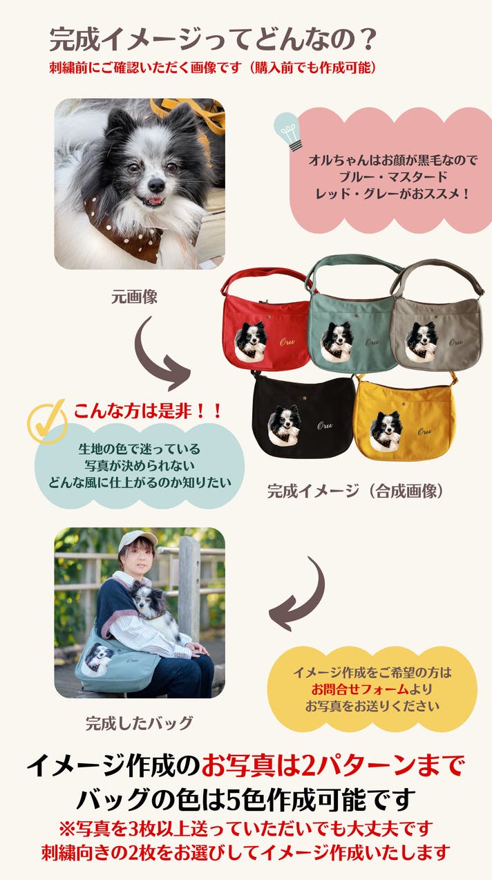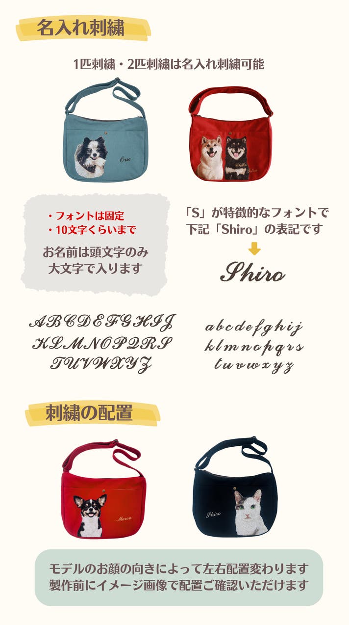 ② 3匹まで刺繍できる、オンリーワンのオーダーバッグ