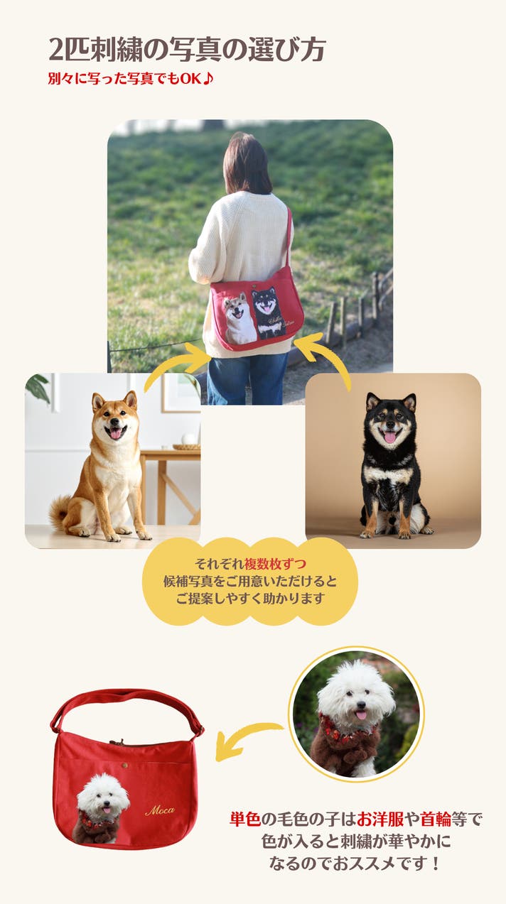 【マクアケ割・2匹刺繍】うちの子ショルダーバッグ