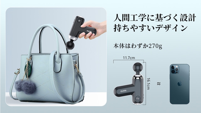 ●わずか270gの軽さで、片手で簡単に持つことができるコンパクトなサイズです。スマートフォンと同じくらいの大きさなので、ポケットやバッグに入れて外出することができます。いつでも手軽に持ち運んで、快適なケアをお楽しみください。