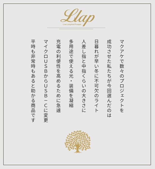「Makuake(マクアケ)」は、実行者の想いを応援購入によって実現するアタラシイものやサービスのプラットフォームです。このページは、 プロダクトカテゴリの 「LLAP極小懐中電灯|吊下・引掛・貼付・巻付対応|居場所通知に役立つ赤青灯も」プロジェクト詳細ページです。