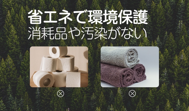 - 手拭き用タオルの必要がなくなるので、手間がかからず、衛生対策ができる!