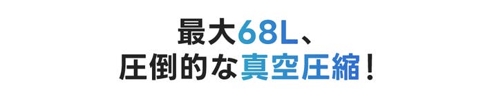- ボタン1つで自動圧縮!最大68L+5cm拡張の大容量で整理しやすい収納スペース!
