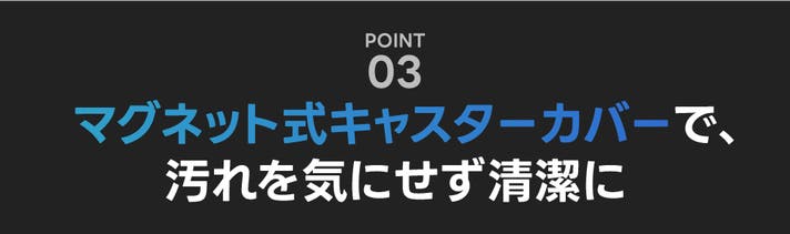 A. 使用後はマグネット式のキャスターカバーを装着することで、車輪のほこりが服に付着するのを防げます。