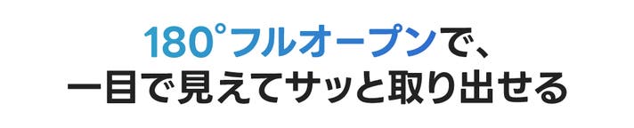 180°フルオープン構造で、中身を一度に確認でき、迷わず素早く取り出せます。
