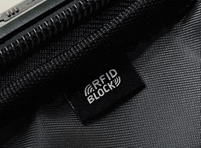 特殊素材を採用し、電波を利用して情報を読み取るRFID技術をしっかり遮断します。