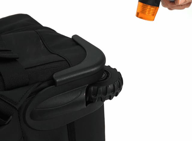 スーツケースからバックパックへ戻す際、キャスターに付着した汚れが衣服に触れる心配がある場合も、カバーを底面に固定することで清潔に使用できます。