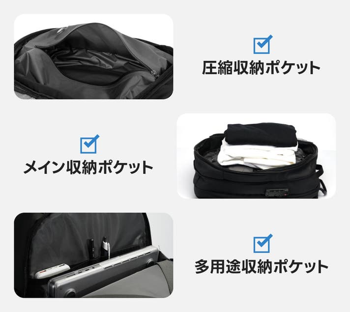 私たちは海外出張や旅行が多く、バックパックの収納スペースに不便を感じていました。 「もっと多く、もっと効率的に収納できないか」と考え、圧縮機能を搭載することでバックパックの空間を最大限に活用できるようにしたのが、この製品の始まりです。
