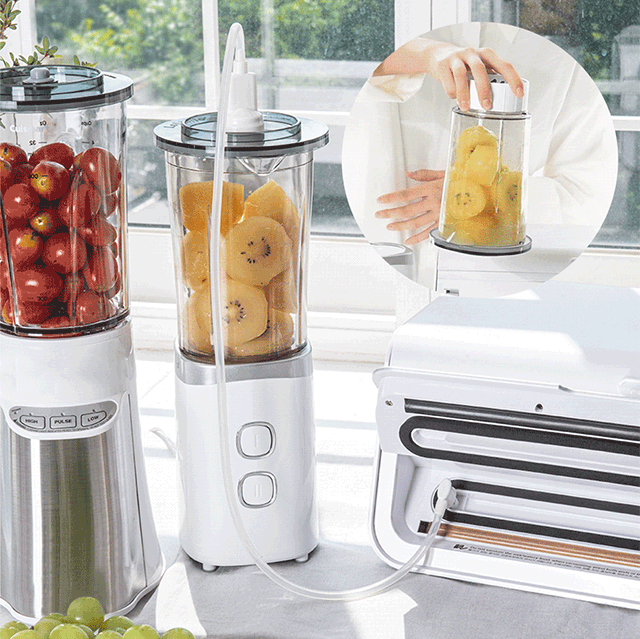 3つの機能を一つに!容器包装と真空シーリング包装機能で簡単に密封することができます。さらに、付いている真空ホースとエアトップで真空にすれば、真空ミキサーとしても使える活用性の高い優れた商品です!