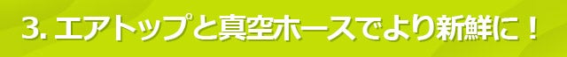 付属の「エアトップ」と「真空ホース」を使用すると、通常のミキサーを真空にする事が出来ますので、食品本来の風味のままで、長時間保管する事も可能です。
