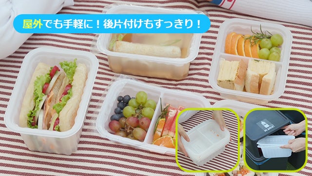 遊びに行く時、食べ物や食材などを容器に密封して持って行けば、内容物をこぼれる恐れがないので便利です。後片付けも楽にできます。