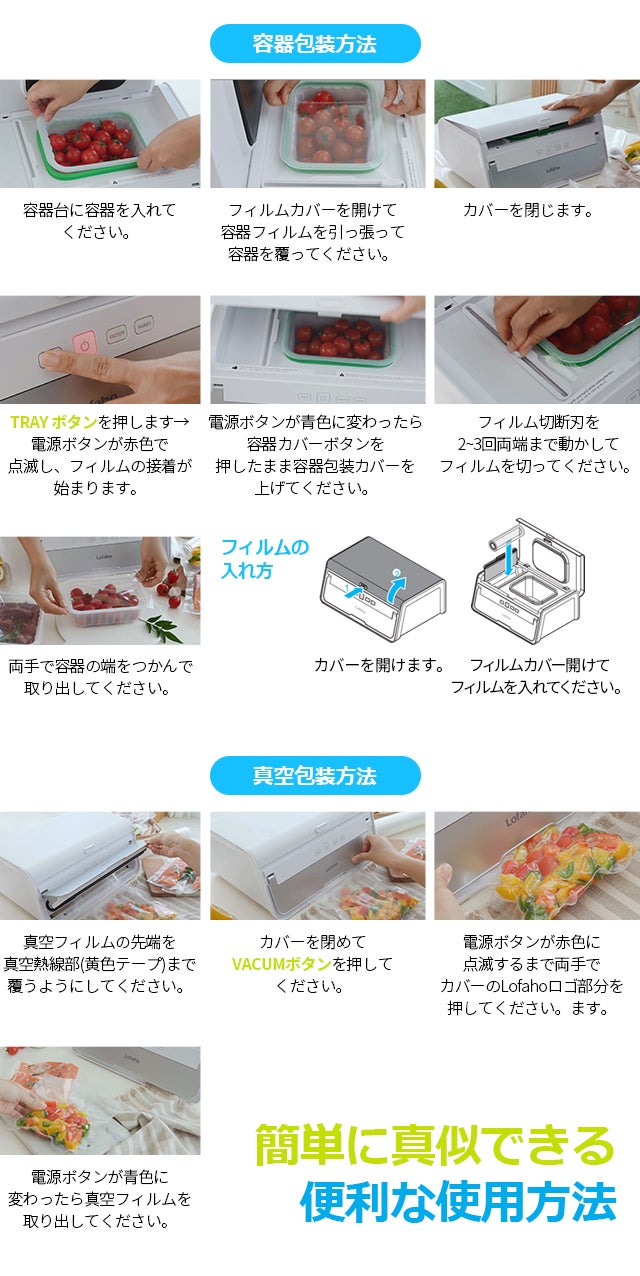 - 容器包装、真空シーリング包装、真空保存!3つの機能がLofaho一つでOK!