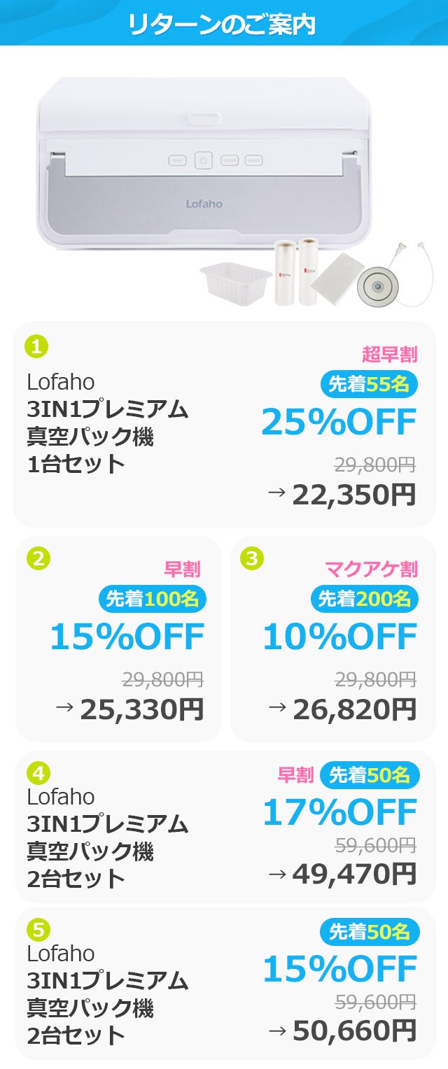 【マクアケ割10%OFF】Lofaho 3in1プレミアム真空パック機1台セット