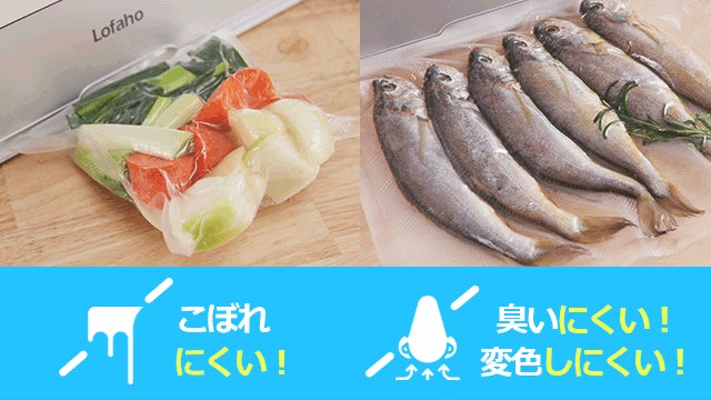 真空ポーチに包装したら食材の新鮮さを保つことができます。使い残しの食材が結局腐ってしまい、食べられなくなって捨てた経験ありませんか?これからは「Lofaho」を使用して真空パックにより新鮮に保存してください。