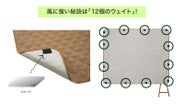 - ウェイト入りで風に強い!広げるだけで楽々設置、四隅に荷物を 置く風対策が不要になります。
