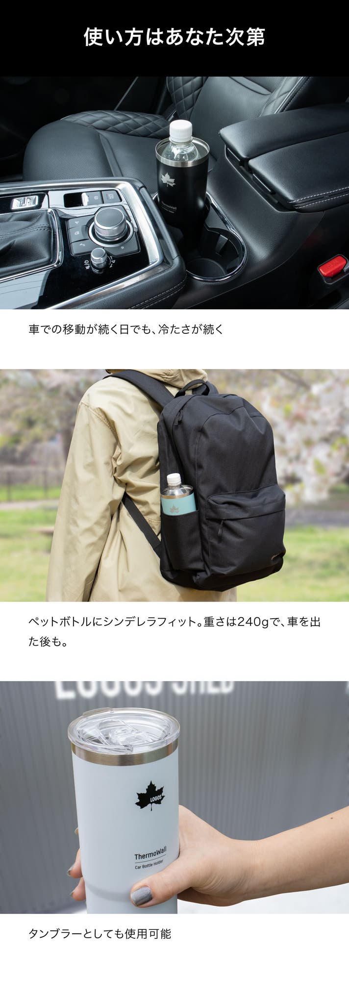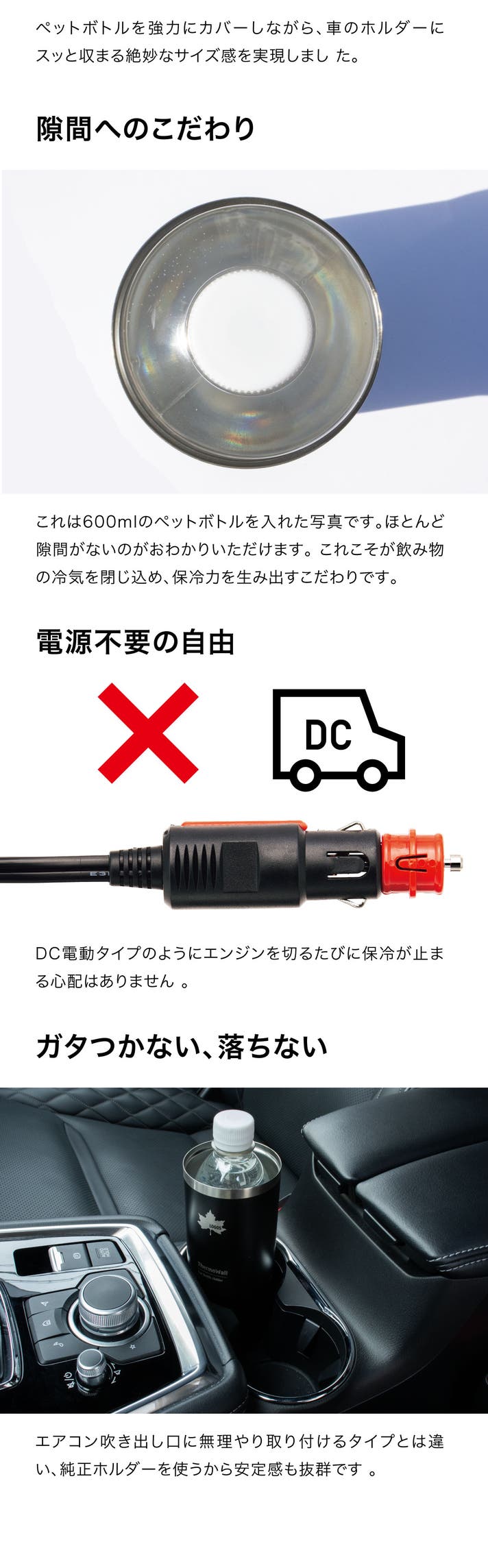 - 大好評だったペットボトルシリンダーへのお声から開発された、真空断熱構造のカーボトルホルダー