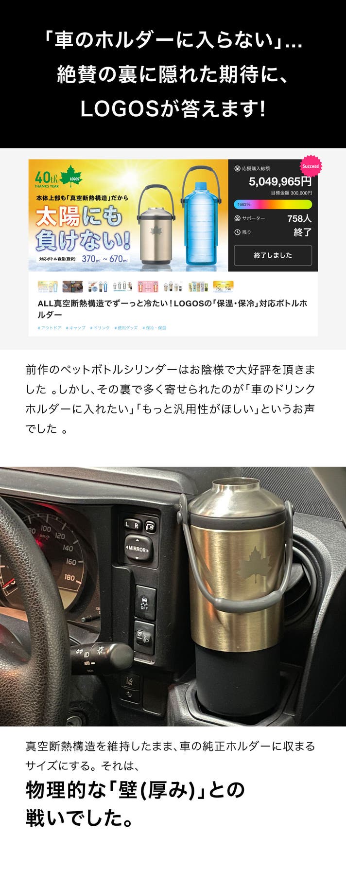 「Makuake(マクアケ)」は、実行者の想いを応援購入によって実現するアタラシイものやサービスのプラットフォームです。このページは、 プロダクトカテゴリの 「車のホルダーに魔法を。1mmの真空でペットボトルをキンキンに守り抜く|LOGOS」プロジェクト詳細ページです。