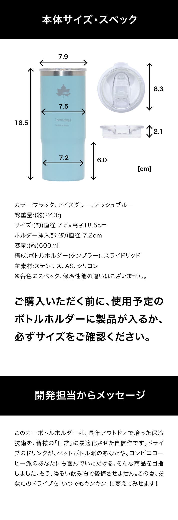 ThermoWall 真空断熱 カーボトルホルダー (Type600) アイスグレー