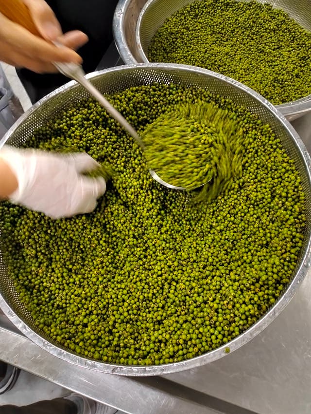普通の粗挽きコショウやコショウパウダーの原料である黒コショウ・白コショウは収穫後に乾燥・脱皮処理される為、果肉をそのまま楽しむ『食べるコショウ』 には向かない、ということが分かりました。