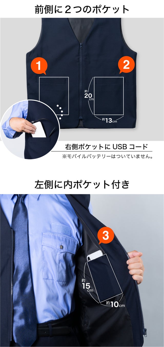 ※洗濯の際は、USBコードをポケットに入れ、ネットに入れてから洗ってください。