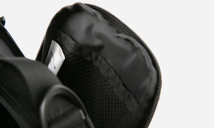 後ろのポケットにはメッシュポケットがあり、パスポートやスマートフォンを仕分けて入れるのに便利です。