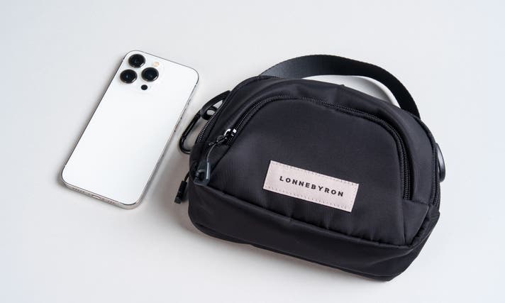 iPhone13proと比較した画像です。ロンネカバンはほとんどのスマホが入る大きさで製作されています。