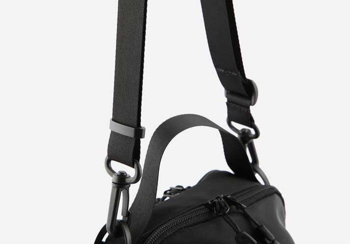 クロスストラップは最短74cm ~ 最長130cmまで調整可能で、ストラップを整理できるクリップも付属しています。