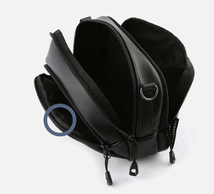 ロンネシリーズは前ポケット、中央ポケット、後ろポケットの3つのポケットに分かれていて、財布、パスポート、スマホなどを分けて収納できます。