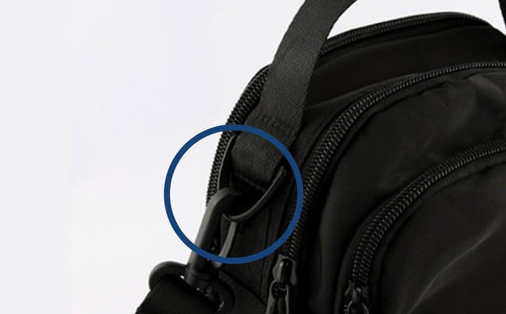 観光地や人混みでもカラビナで固定し、盗難を防止するのに便利です。