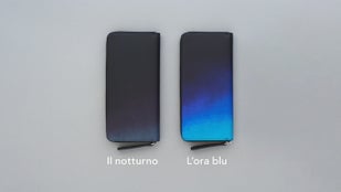表面の空の色として考えた場合の地面側に指を入れる穴があり、そこに指を入れて縦に使っていただく設計となっています。(L'ora bluとIl notturnoは明るい側、L'ora magicaでは紫色側に指を入れる穴がございます。)