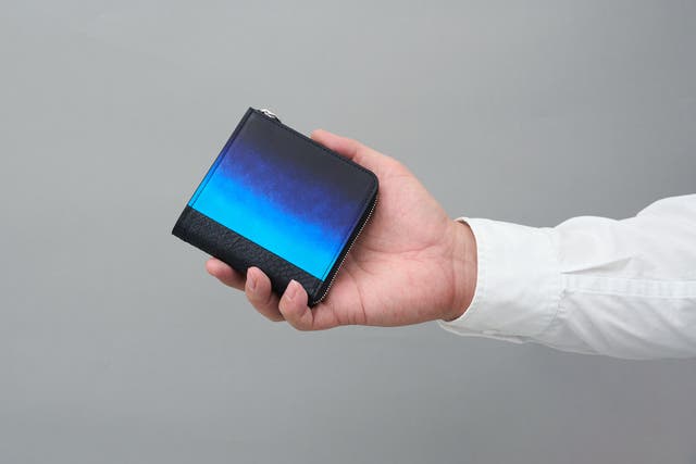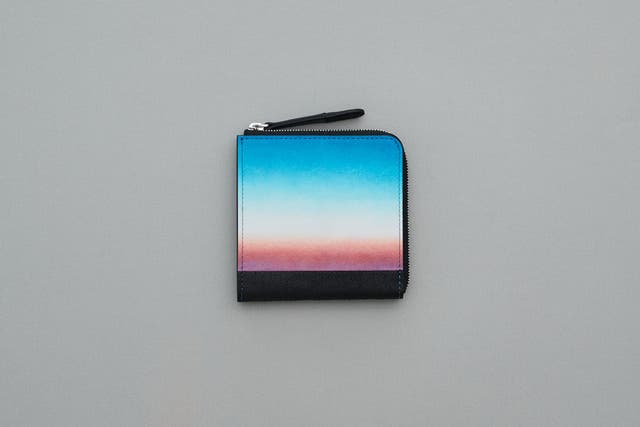 - 職人の手によって一枚一枚丁寧に染め上げた、手染めグラレーションレザーで「変わりゆく空」を描写。
