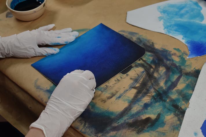 一枚一枚、何色も塗り重ねて美しいグラデーションに仕上げています。