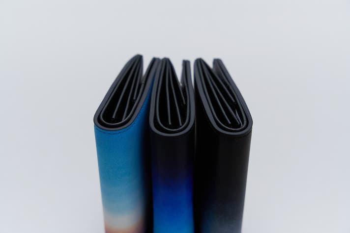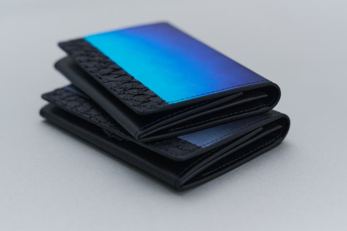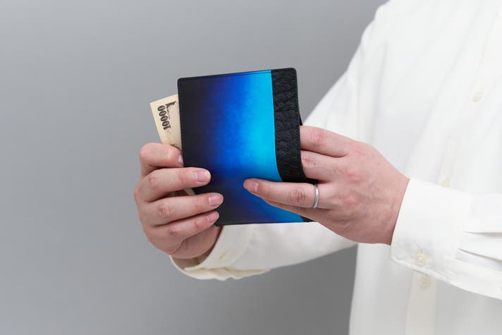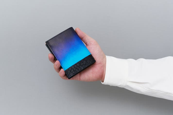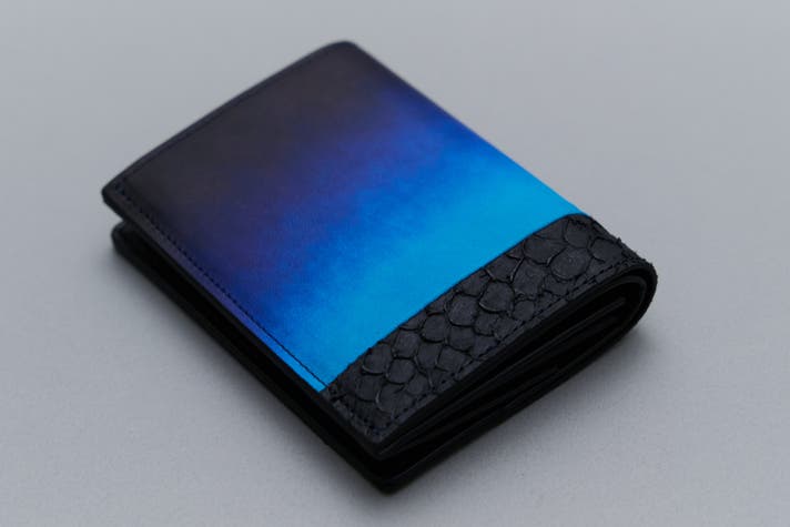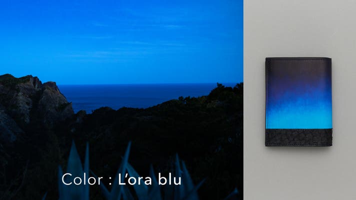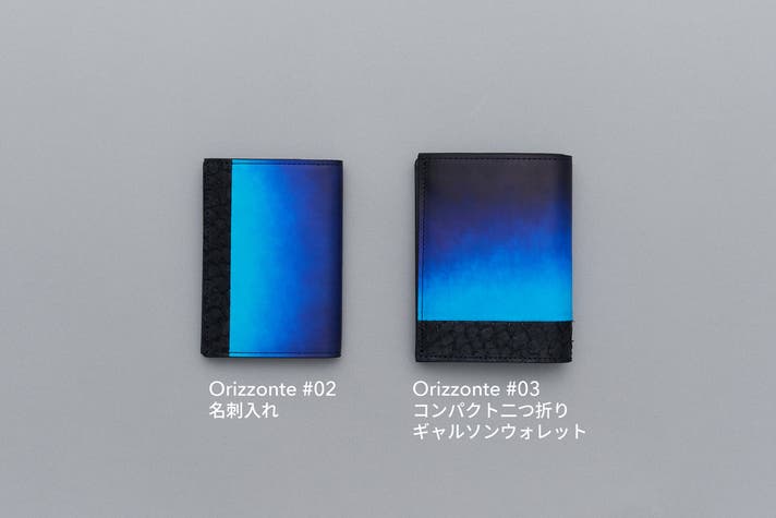 「Orizzonte #03(Madai) コンパクト二つ折りギャルソンウォレット|カラー:L'ora blu(ブルーアワー|ブルー系グラデーション)」