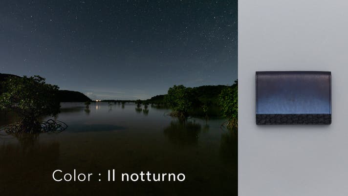 「Orizzonte #03(Madai) コンパクト二つ折りギャルソンウォレット|カラー:Il notturno(夜景画|ブラック系グラデーション)」