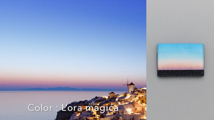 名刺入れに使用するグラデーションレザーは小さいため、より繊細な作業が必要な為、いままで「L'ora magica(マジックアワー)」の色をリリースしておりませんでしたが、「『L'ora magica(マジックアワー)』の名刺入れが欲しい」というご要望にお応えし、新たに開発いたしました。