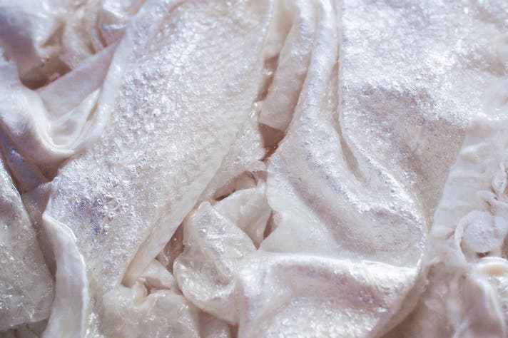 強度に関しては、古来アイヌの人々が鮭皮をブーツに加工していたという資料が残っているほど、実は魚の革は丈夫な素材です。魚特有の繊維がクロスハッチ構造になっている為、魚の皮の薄さからは想像できない程の強度が実現できています。