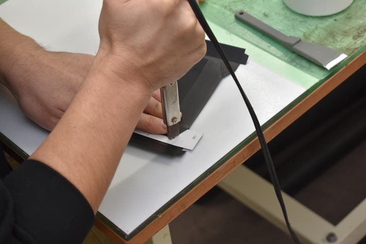 「風琴マチ」は、通常の「蛇腹マチ」よりも多くの型紙が必要となる上に、0.1mm単位での革の漉きの調整が必要なだけでなく、裁断を精密に行う必要があるため、高度な技術と手間がかかります。そのため、大量生産には向かず、この技を伝承している工房もごくわずかとなっているのが現状。