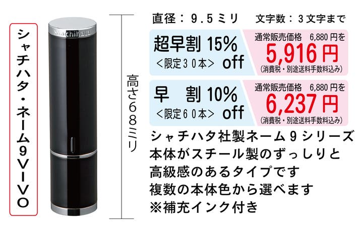 【超早割・15%OFF】シヤチハタ・ネーム9VIVO