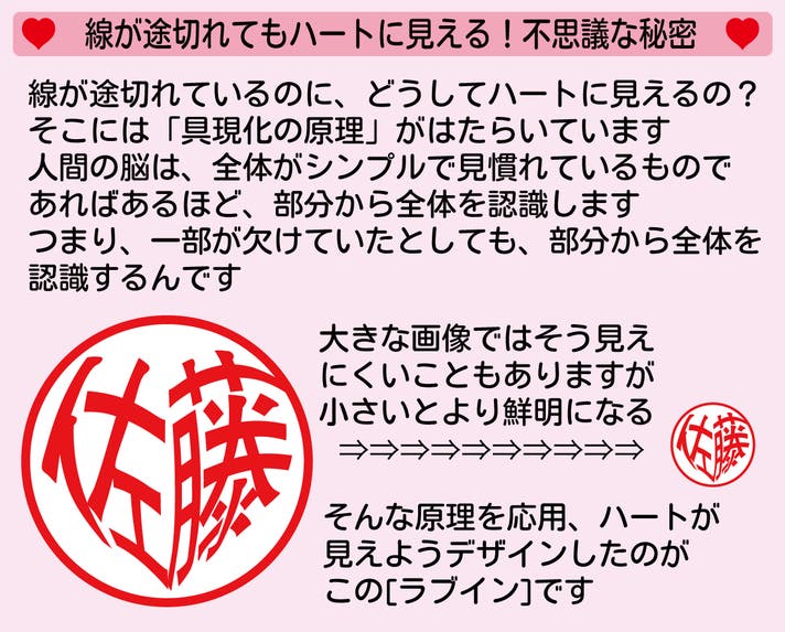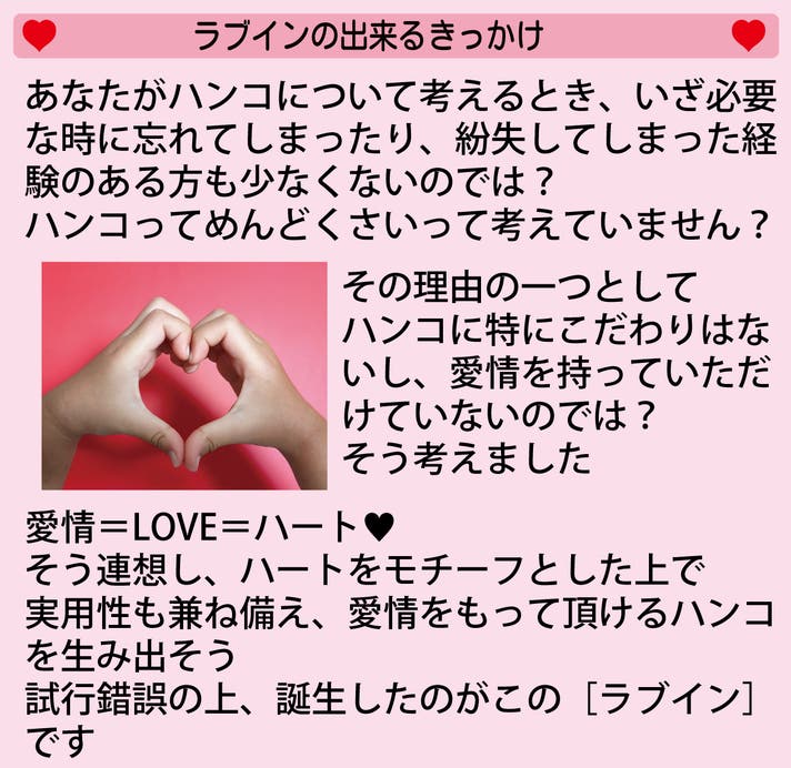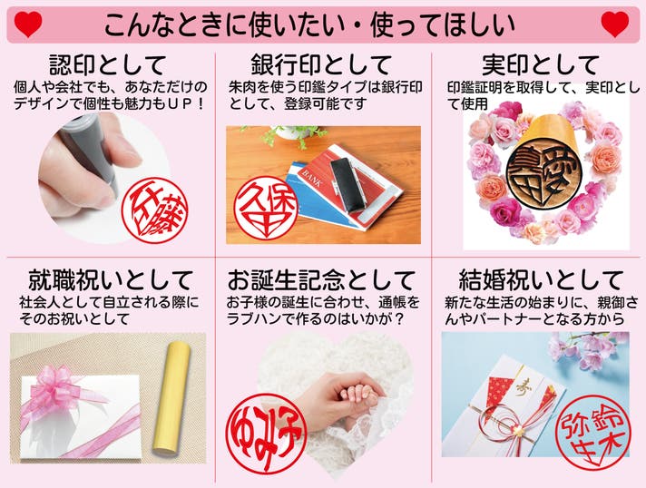 - 認印としてはもちろんのこと、銀行印・実印としても登録可能な愛情いっぱいのハンコ