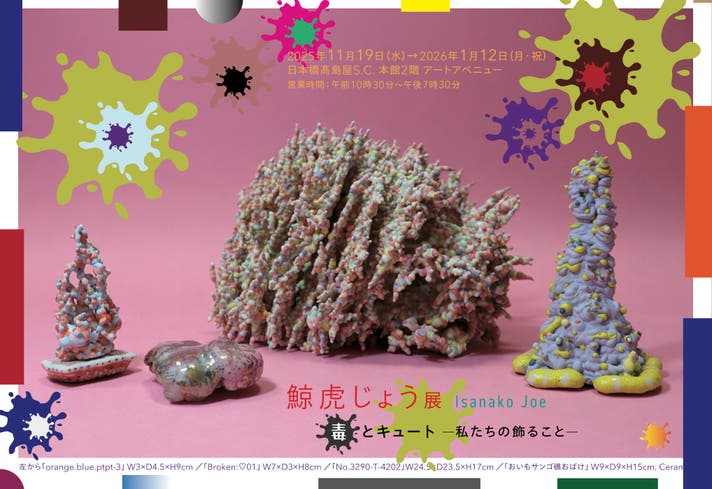 主な展覧会にTHE HEADLINERS 2024―陶芸フェス、はじめます。(茨城県陶芸美術館 2024-2025)、鯨虎じょう個展「毒とキュートー私たちの飾ることー」(日本橋高島屋 2025)等。Instagramフォロワー 2.6万人(*2025年12月15日時点)