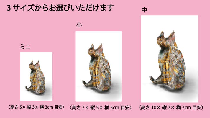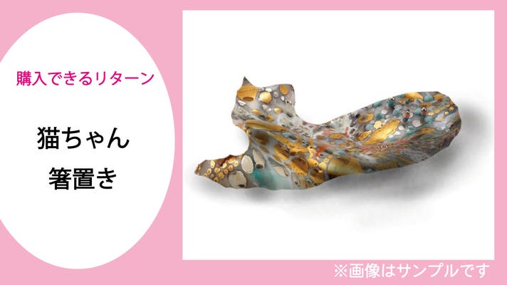 リターン品によっては、購入者様のお宅の猫ちゃんをモチーフにお作りする完全受注制作のスペシャルリターンもございます。スペシャルリターンは猫ちゃん以外の動物さんやモチーフや抽象的なイメージ・器やお皿もご相談可能です!