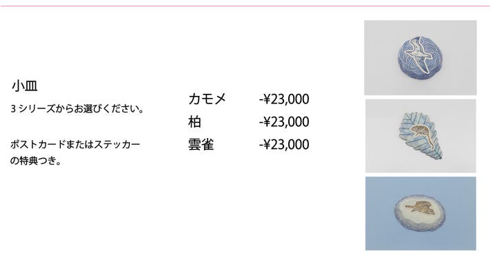 アニマルブローチ/小皿の購入特典は、ポストカードorステッカーのいずれか1つからお選びいただけます。